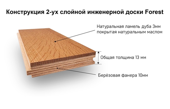 Верхний слой выполнен из натурального дуба, известного своей выразительной текстурой и долговечностью.